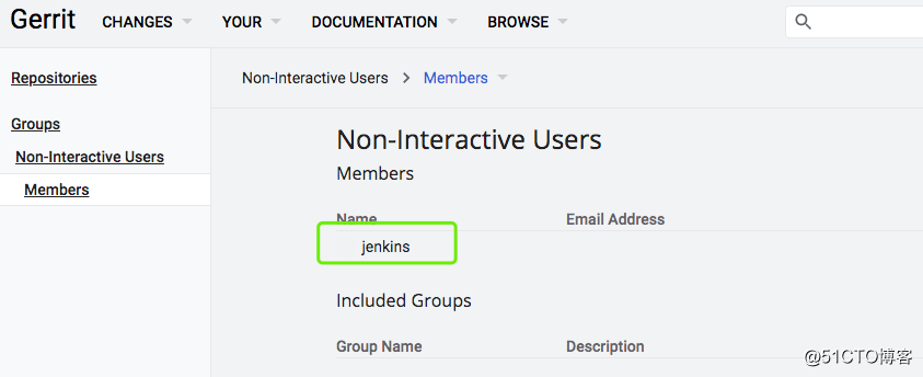 将Jenkins用户加入Non-interactive Users组。BROWSE>Groups>Non-Interactive Users>Members。