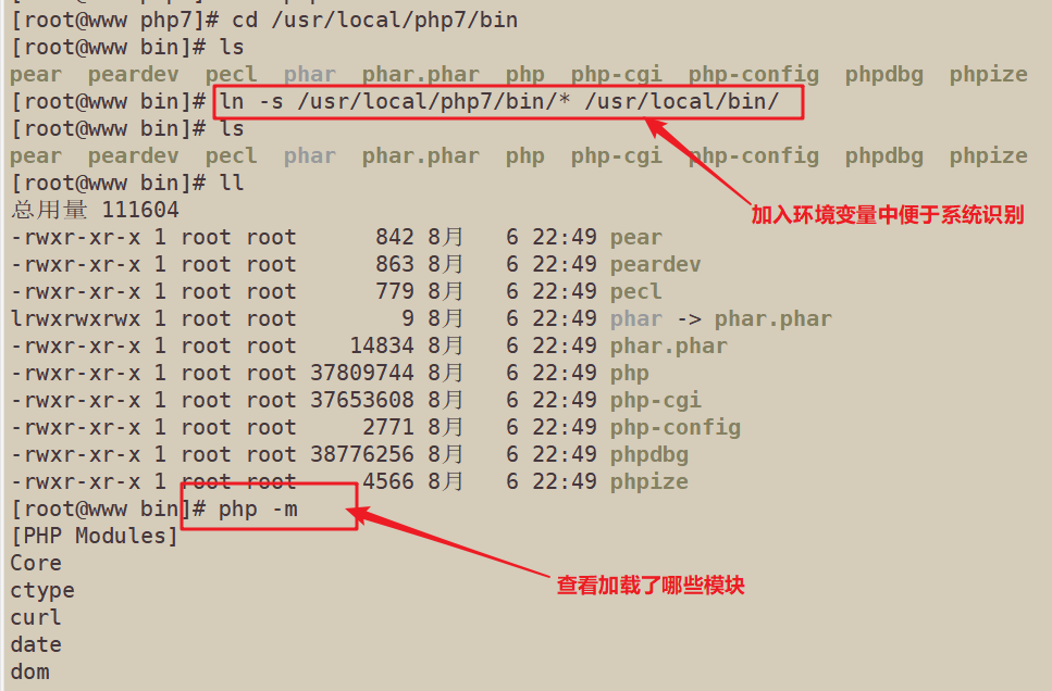 ln -s /usr/local/php7/bin/* /usr/local/bin/ php -m #查看PHP 加载了哪些模块