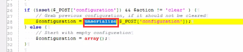 全局搜索PMA_Config()找到_wakeup()代码段,代码段调用函数中存在eval等函数操作,可调试load