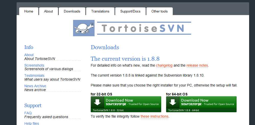 2.下载TortoiseSVN,http://tortoisesvn.net/downloads.html