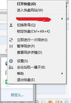然后在任务栏中右键 “金山快盘”的快捷方式,可以对金山快盘进行设置和同步操作。