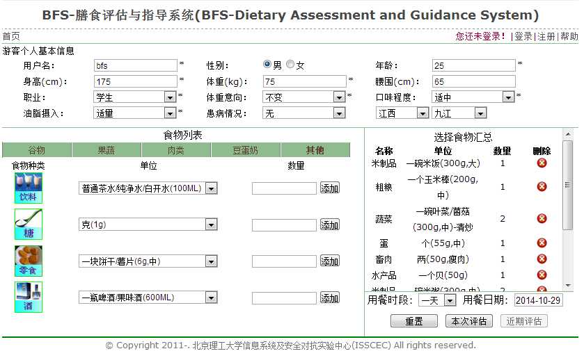 小编今天为大家推荐一个用于个体膳食评估与指导的系统,很简单,很实用,很有效。http://www.isclab.org/dag/dietary.php