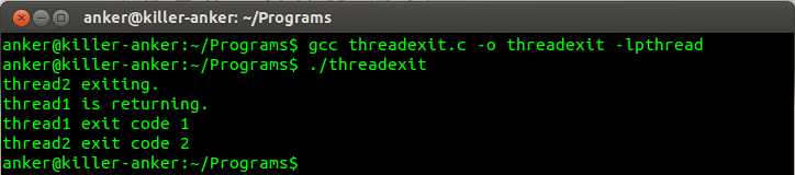 42 printf("thread 2 exit code is: %d\n",(int)pret);