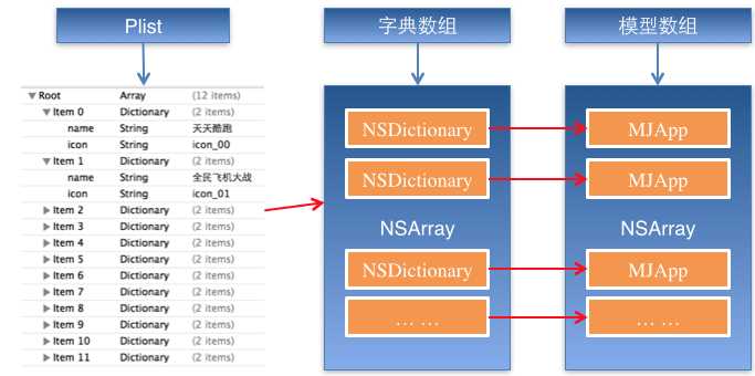 上面代码可以做进一步的优化,从plist文件中读取数据是可以交给模型去处理的,优化后代码如下: