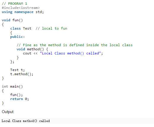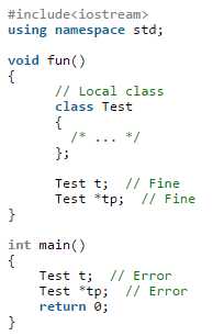 5) 局部类可以访问全部类型,变量和函数,以及可以访问相同函数内的局部类;