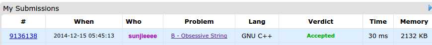 Codeforces Round #282 (Div. 1) B. Obsessive String