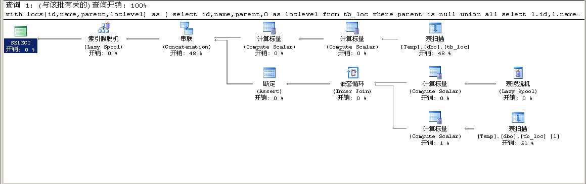 接下来就可以使用该关键字创建存储过程返回结果集,并附加每条记录所位于的“层”数,如下图所示: