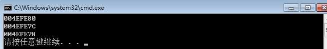 #include<iostream> using namespace std; void main() { int i1; int i2; int i3; cout<<&i1<<endl; cout<<&i2<<endl; cout<<&i3<<endl; }