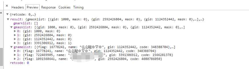 返回json对象由两部分组成:retcode、result,前者表示请求是否成功不提,我们主要看result,里面包含了这些东西: