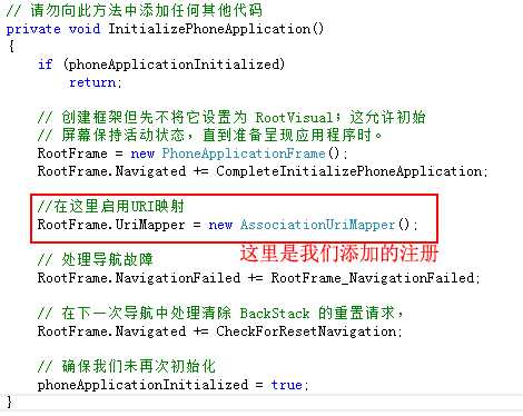 [C#] /* 在App InitializePhoneApplication 方法中,我们需要注册URI转换 */