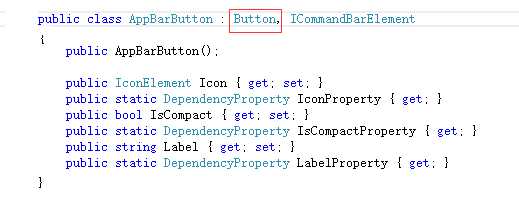之所以可以直接设置 xmal 元素,原因是 AppBarButton 继承自 Button,