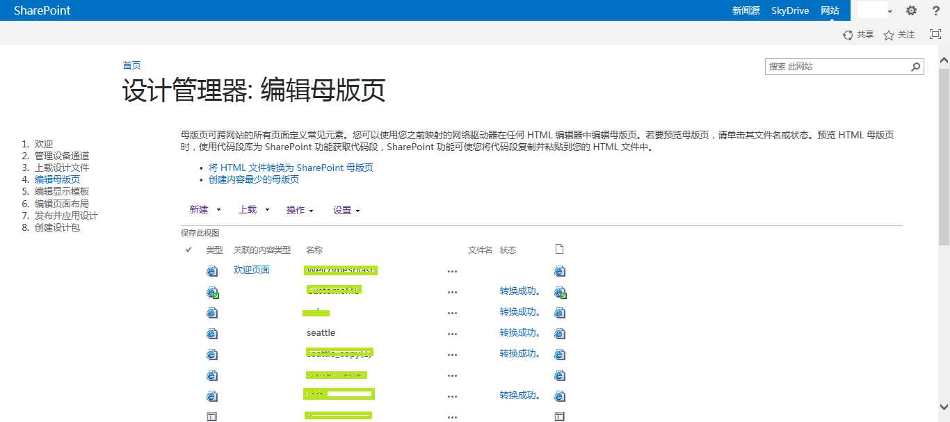前言:在新版本的SharePoint 2013上,有新的功能可以通过HTML导入母版页,然后HTML和Master页面相关联,更改HTML页的时候,Master会自动同步修改,然而,有些时候我们不需要这样的关联,所以,我们要取消这样的关联。其实操作很简单,只是在设计管理器里找到html页,编辑他的属性,取消关联即可。简单的截图介绍,见笑了。