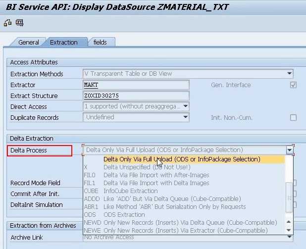 当使用RSO2设置增量数据以“Additive Delta”方式记录时,数据源增量处理方式则为ADD:
