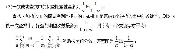 (1):对于一次不成功的查找,其期望的探查次数之多为1/(1-α)。