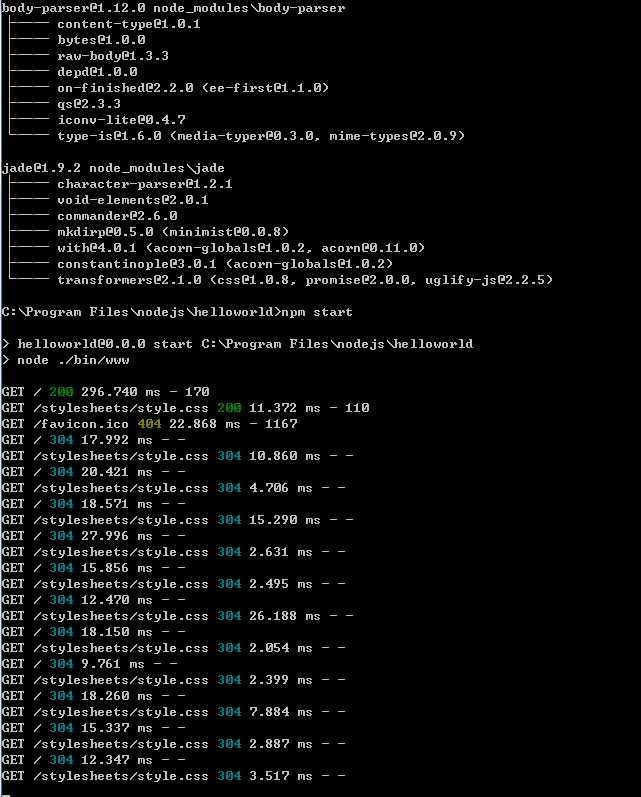 由于express4.0版本中将命令工具分家出来了(项目地址:https://github.com/expressjs/generator),所以我们还需要安装一个命令工具,命令如下: