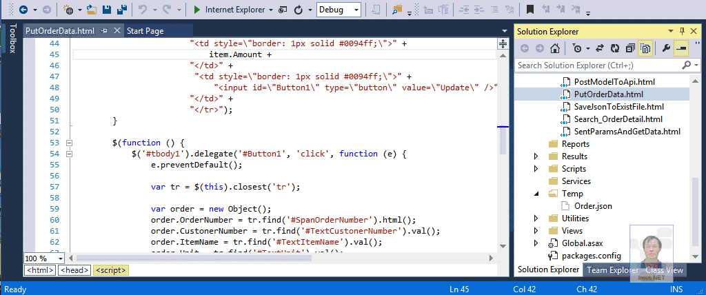需要对数据更新,那得先把数据显示在网页上,然后编辑,再进行更新。去获取Web API的数据显示于网页,我们有学习了,在此也可以重新温习一下: