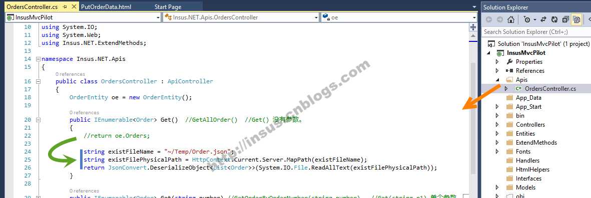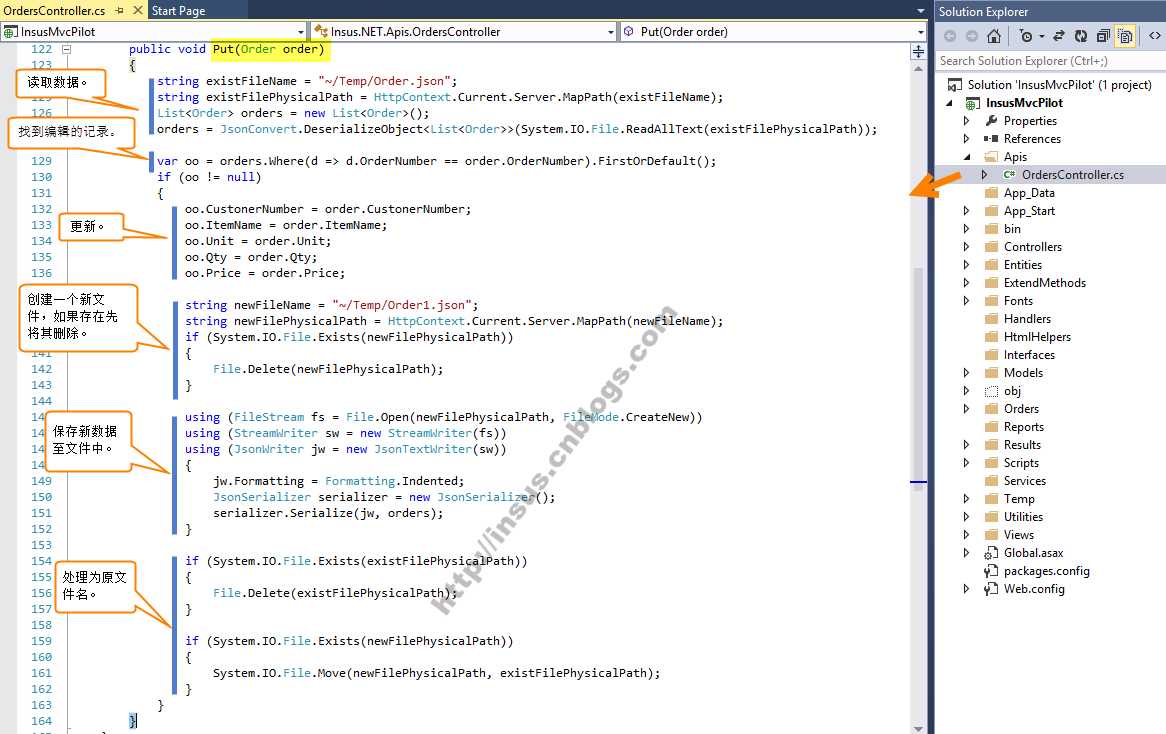 去Api控制器,添加一个PUT的方法,逻辑处理均有说明,参考之。