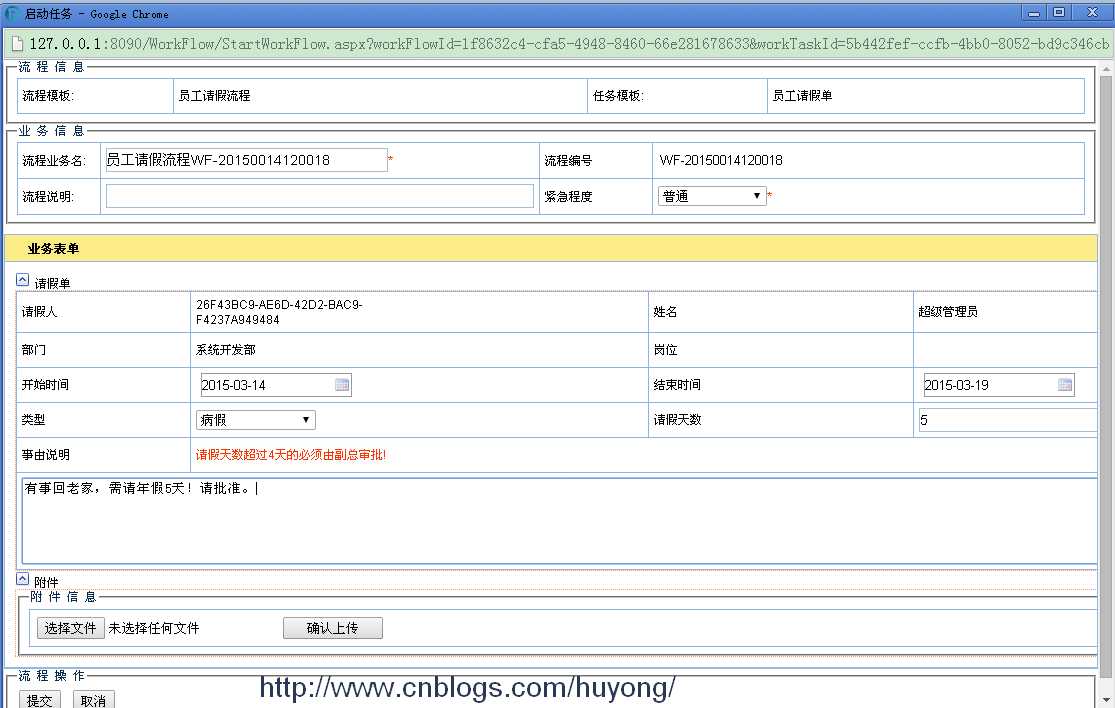 ??? 员工请假流程在企业各大信息化系统中基本都会涉及到,本文我将向大家展示使用RDIFramework.NET工作流组件来自定义员工请假流程。目前的请假业务流程要求是这样的: