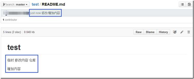 5、在提交修改信息处所填的信息对应仓库目录浏览处的位置如下图所示: