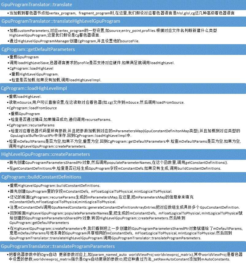 GpuProgram比较重要的是GpuProgramParameters对象,这个对象封装了着色器的参数设置。