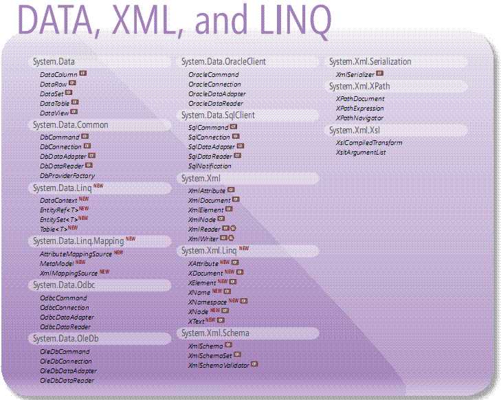 LINQ包括五部分:LINQ to Objects、LINQ to DataSets、LINQ to SQL、LINQ to Entities、LINQ to XML。
