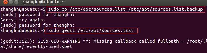 sudo cp /etc/apt/sources.list /etc/apt/sources.list.backup (备份下当前的源列表)