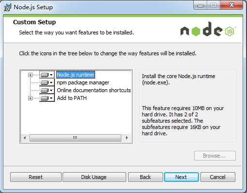 下载之后,双击 node-v0.12.4-x64.msi 运行并安装,这个就不赘述了, 不断下一步即可, 当然最好将目录改一下。