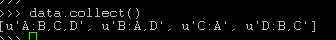 def f(x): links=x[1][0] rank=x[1][1] n=len(links.split(",")) result=[] for s in links.split(","): result.append((s,rank*1.0/n)) return result file="hdfs://10.107.8.110:9000/spark_test/pagerank.txt" data=sc.textFile(file) link=data.map(lambda x:(x.split(":")[0],x.split(":")[1])) n=data.count() rank=link.mapValues(lambda x:1.0/n) for i in range(10): rank=link.join(rank).flatMap(f).reduceByKey(lambda x,y:x+y).mapValues(lambda x:0.15/n+0.85*x)