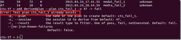 >add derivedplan --plan cts_fail_1 -s 2 -r fail