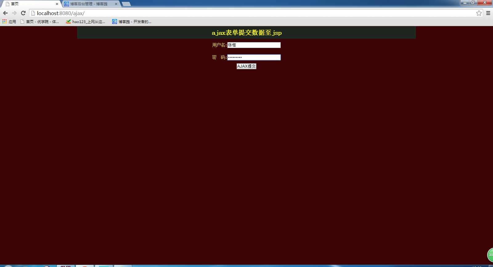 结果 大家可以看到的是 有正确的数据输出 至此一个简单的ajax提交表单数据基本完成 由于时间紧迫 界面不是很美观 请大家原谅