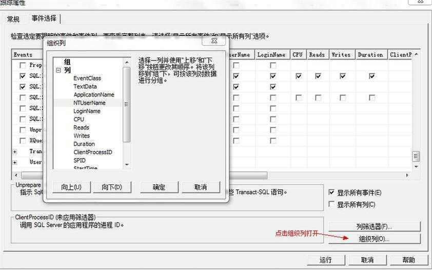 现在回到那个事件选择面板,只有已经被选择的事件才会被显示。如果想显示所有可供选择的事件,则只需选中“显示所有事件”单选框,要添加一个跟踪事件,在Event列中查找一个事件类下的事件,并单击其左边的检查框;要删除不需要的事件,取消选中的事件选择框。