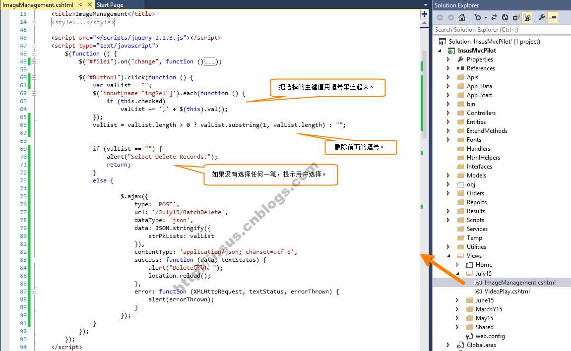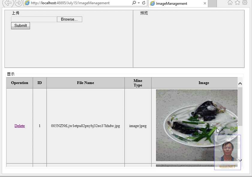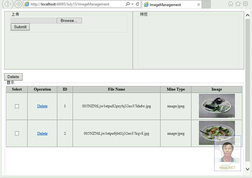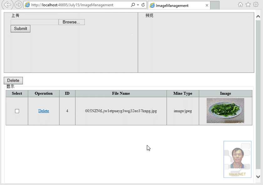 上星期有写了一篇《ASP.NET MVC图片管理(上传,预览与显示)》http://www.cnblogs.com/insus/p/4620420.html 它只实现了上传功能,即时预览以及显示功能。今天我们来完成删除功能。