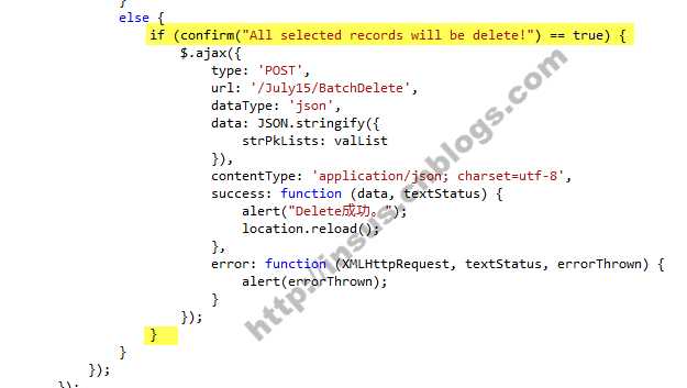 没有问题,能正常删除记录。不过还是没有后悔提示,让用户确认之后,才正确删除,添加一行代码: