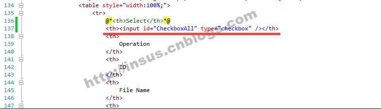 Ok,主要的工作还是视图,我们需要修改html和添加jQuery代码,不急一样一样来。添加一个铵钮标签以及Checkbox: