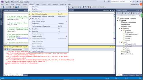 同样,把前面做好的inventory目录下的文件拷贝到新工程的inventory,覆盖新的目录,VS生成的APP模板目录默认名称为“templates”,改一下目录forms名称即可。用数据工具新建一个名为MyDB.db的SQLite3数据库文件,同上一章一样修改settings.py和urls.py。我们调用Validate Django App来确认配置是否正确。