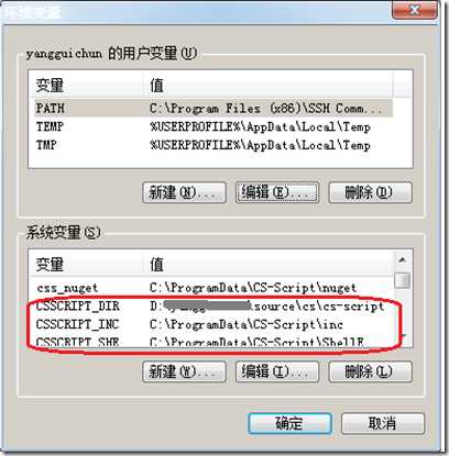 同时会把%CSSCRIPT_DIR%, %CSSCRIPT_DIR%\LIB添加到环境变量中,以便可以找到cscs.exe, csws.exe等各种csscript的工具;