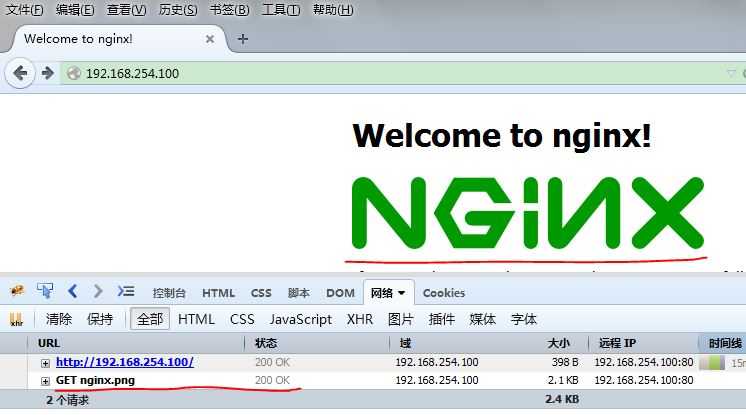 图片 nginx.png 的响应状态是 304 Not Modified,即来自浏览器缓存