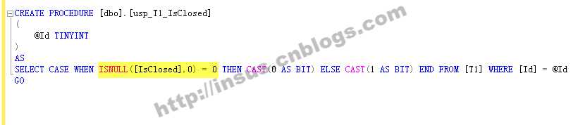 Ok,上面的存储过程,还适合另外一种情形,如使用tinyint。