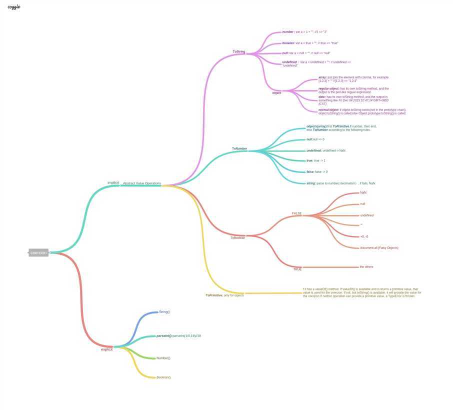 自动类型转换比较复杂,为了说明他们各自的转换规则,我绘制了一张脑图来说明(图片较大,请保存下来用1:1的比例查看):