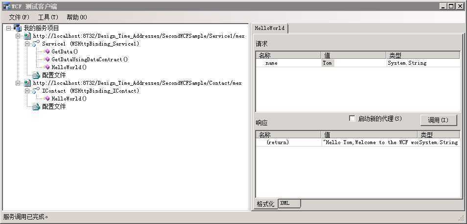 直接以这个项目为启动项目,即可看到WCF测试客户端。