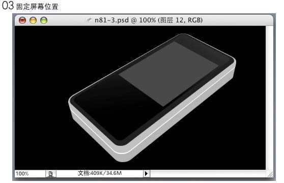1、新建一个大小自定的文档,背景填充黑色,新建一个图层用钢笔勾出手机的轮廓,转为选区后填充灰色,如下图。