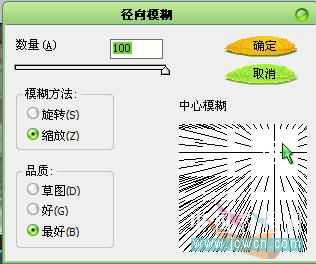 第二步:改变图层模式为滤色,执行:滤镜》模糊》径向模糊,参数如fig03,并把模糊中心放置在合适的位置,效果如fig04