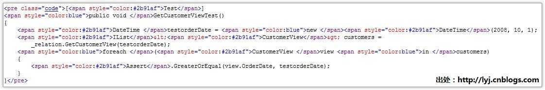 强烈大家使用Windows Live Writer的Paste from Visual Studio插件,从这里下载,如需高亮显示代码,只要从Visual Studio或者SQL Server中复制一下,然后点击“插入from Visual Studio...”。其HTML代码就自动生成了~,唯一的缺点就是每次会在结尾加一个空链接,可能来注明版权吧。