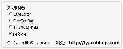 由于Windows Live Writer对博客园的一些发布选项支持不全,我在这里强烈建议把博客园编辑器设置为“纯文本框”(后台选项---Preferences---默认编辑器或者后台左边操作快捷通道):