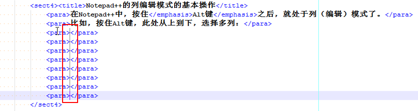 同样的,粘贴到新建的Notepad++的页面中,并以列模式去选取该内容: