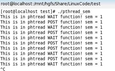 1 #include <stdio.h> 2 #include <string.h> 3 #include <semaphore.h> 4 #include <pthread.h> 5 6 sem_t sem; 7 int semValue; 8 9 void *pthread_wait(void *argv) 10 { 11 while(1) 12 { 13 sem_wait(&sem); 14 sem_getvalue(&sem, &semValue); 15 printf("This is in phtread WAIT function! sem = %d\n", semValue); 16 sem_post(&sem); 17 sleep(1); 18 } 19 pthread_exit("exit wait pthread!\n"); 20 } 21 22 void *pthread_post(void *argv) 23 { 24 while(1) 25 { 26 sem_wait(&sem); 27 sem_getvalue(&sem, &semValue); 28 printf("This is in phtread POST function! sem = %d\n", semValue); 29 sem_post(&sem); 30 sleep(1); 31 } 32 pthread_exit("exit post pthread!"); 33 } 34 35 int main(void) 36 { 37 pthread_t pt[2]; 38 void *ret; 39 40 sem_init(&sem,0,2); 41 pthread_create(&pt[0], NULL, &pthread_wait, NULL); 42 pthread_create(&pt[1], NULL, &pthread_post, NULL); 43 pthread_join(pt[0], &ret); 44 printf("return value %s", ret); 45 pthread_join(pt[1], &ret); 46 printf("return value %s", ret); 47 48 return 0; 49 }
