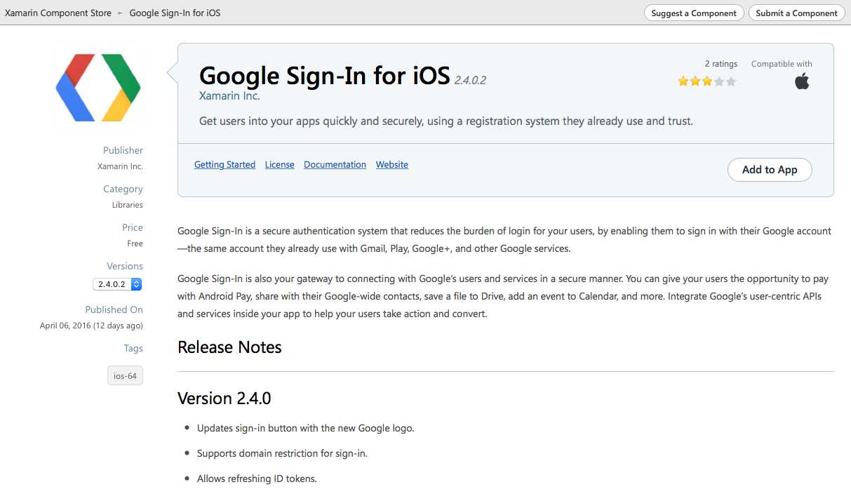 只要引入 Xamarin 為 Google Single-SignIn 開發的 Component 即可。
