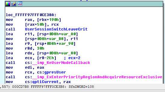 任何的user-mode callback流程最终内核到用户层的入口点都会是 nt!KeUserModeCallback