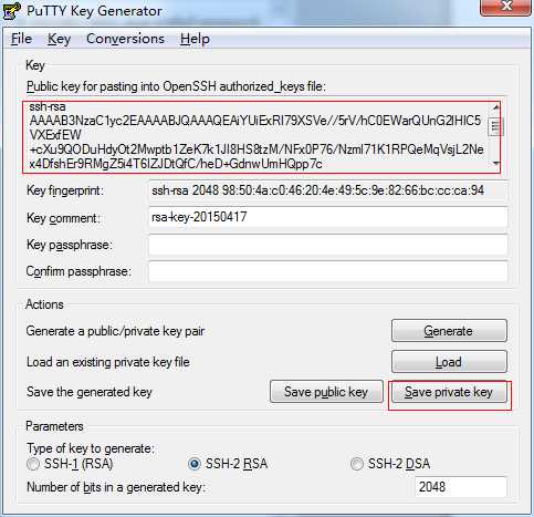 然后点击Save Private Key按钮保存为私钥文件到本地磁盘中