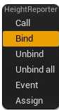 通过使用Event Dispatcher(事件调度器)菜单上的 Event(事件) 选项创建一个具有正确签名的自定义事件, 使得该事件可以绑定到该事件调度器上。 尽管这个事件节点的看上去和没有连接到 Bind 节点的自定义事件节点类似, 但是当执行 Call [事件调度器名称] 节点时将永远不会触发该事件。